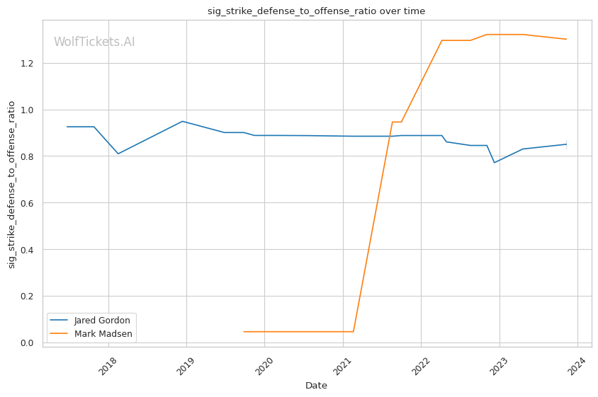 | Significant Striking Defense to Offense Ratio | 87.03% | 130.16% | 110.38% | |