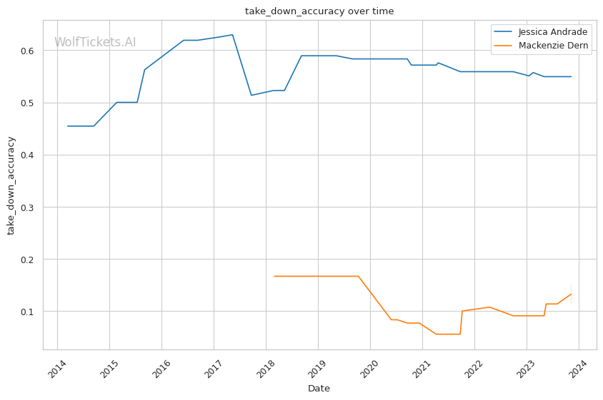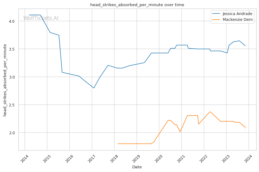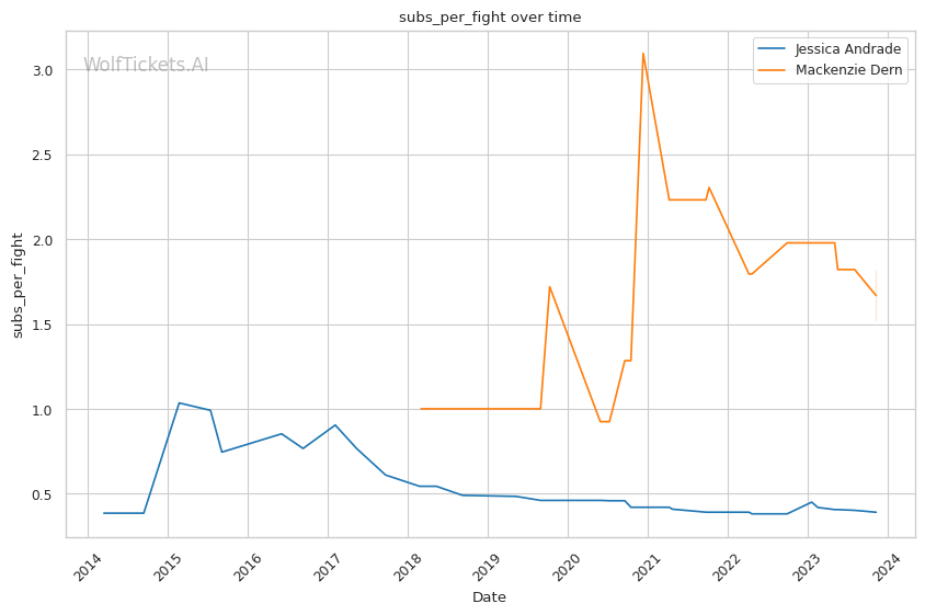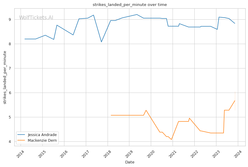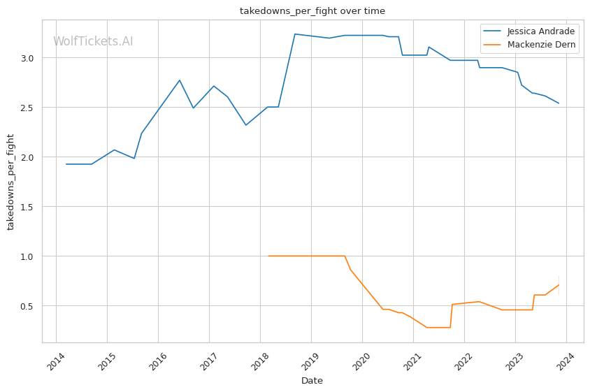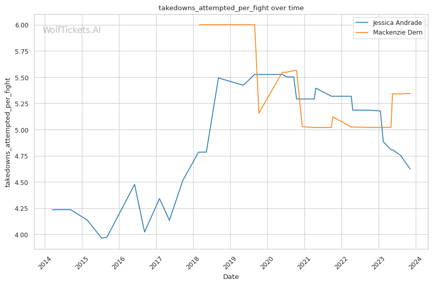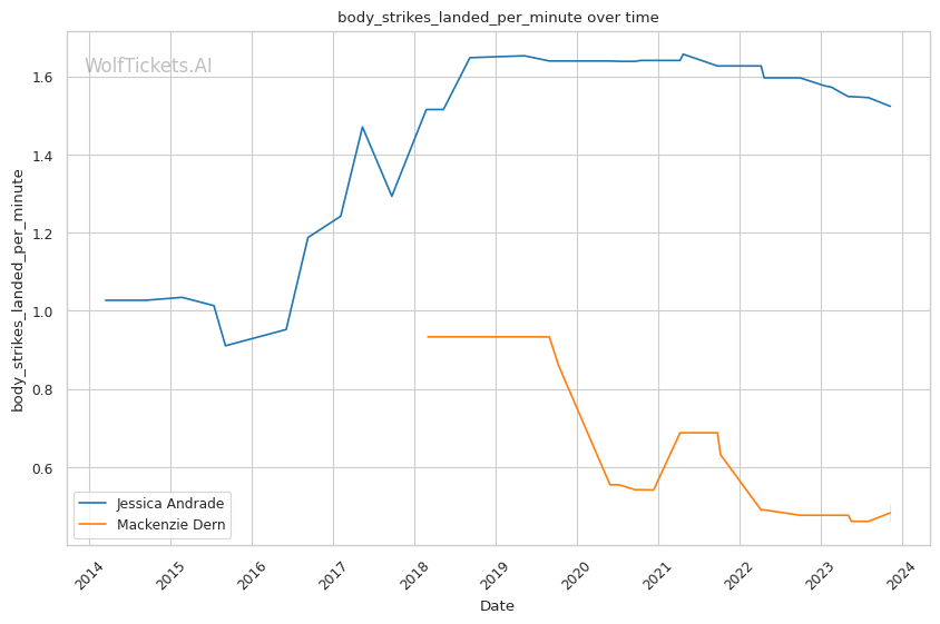 | Stat | Jessica Andrade | Mackenzie Dern | Weight Class Average | |