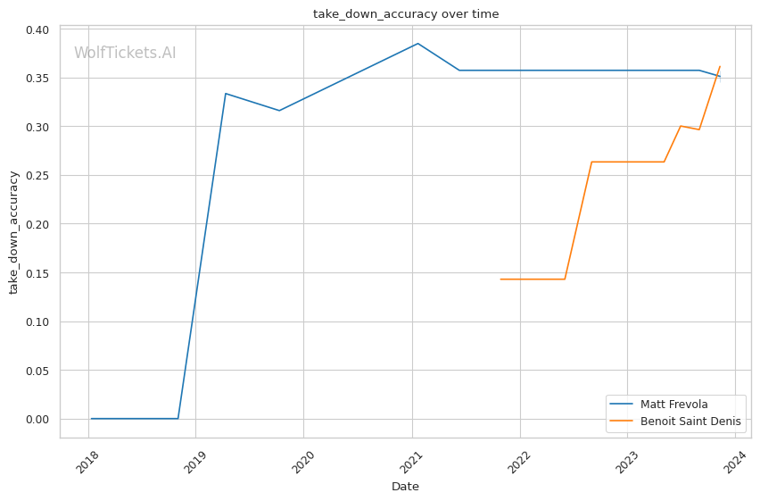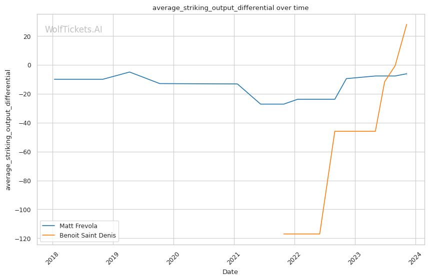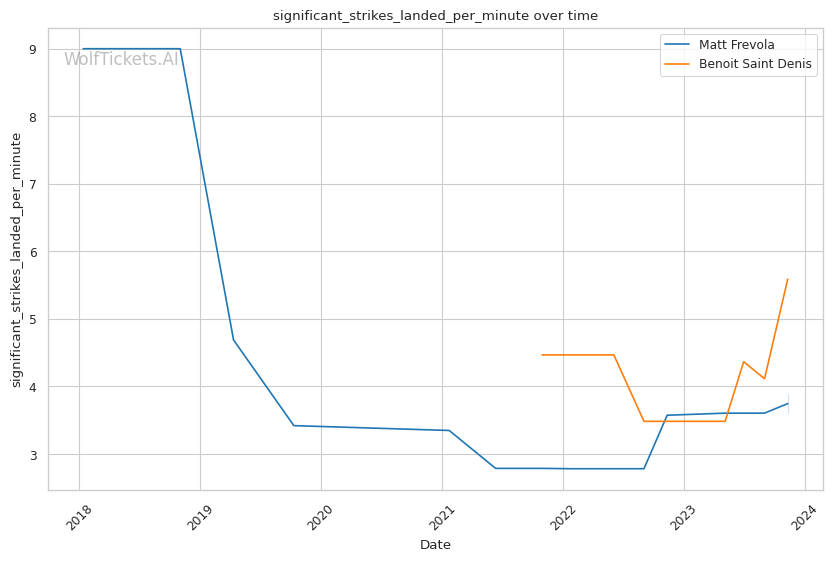 | Stat | Matt Frevola | Benoit Saint Denis | Weight Class Average | |
