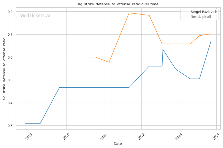 | Significant Striking Defense to Offense Ratio | 66.90% | 70.97% | 68.94% | |
