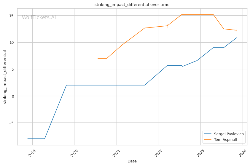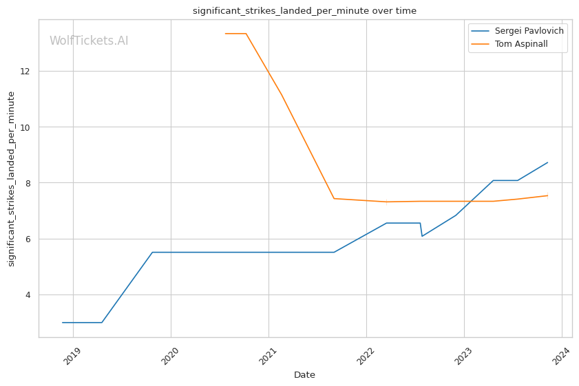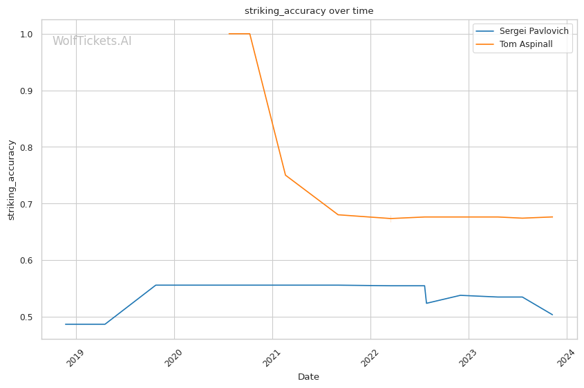 | Stat | Sergei Pavlovich | Tom Aspinall | Weight Class Average | |