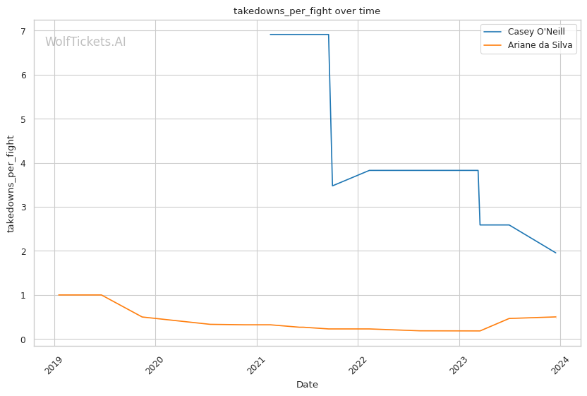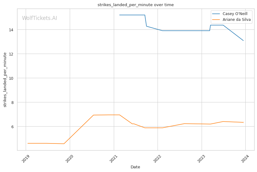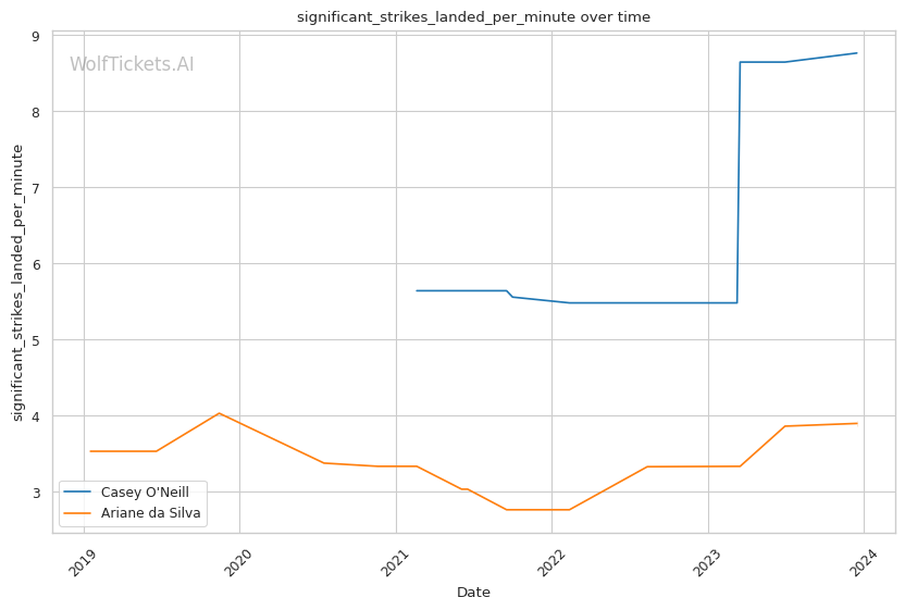 | Stat | Casey O'Neill | Ariane da Silva | Weight Class Average | |