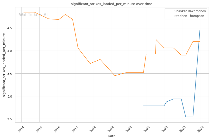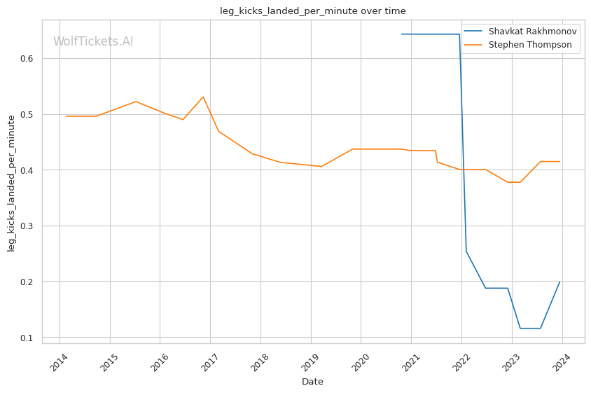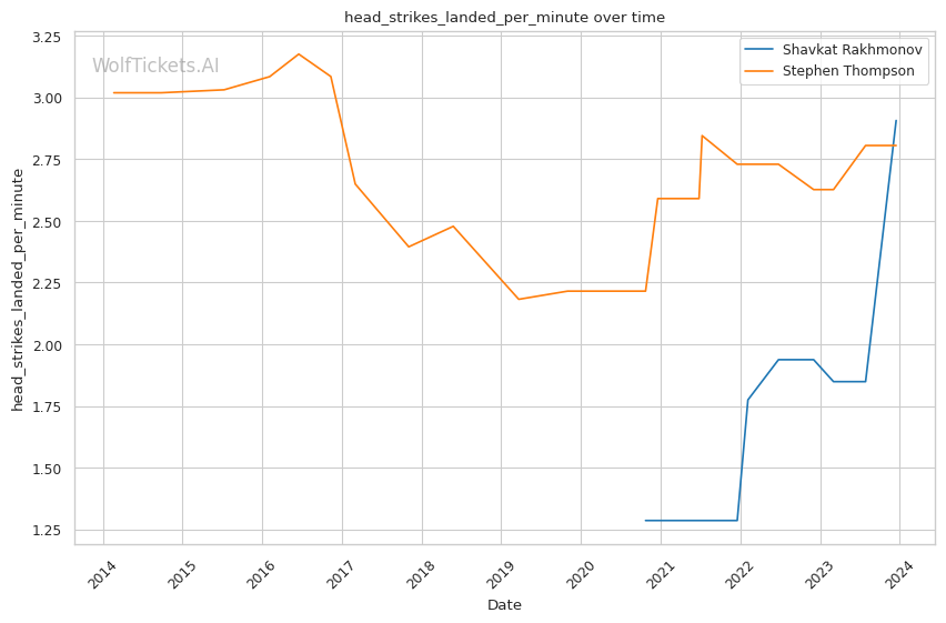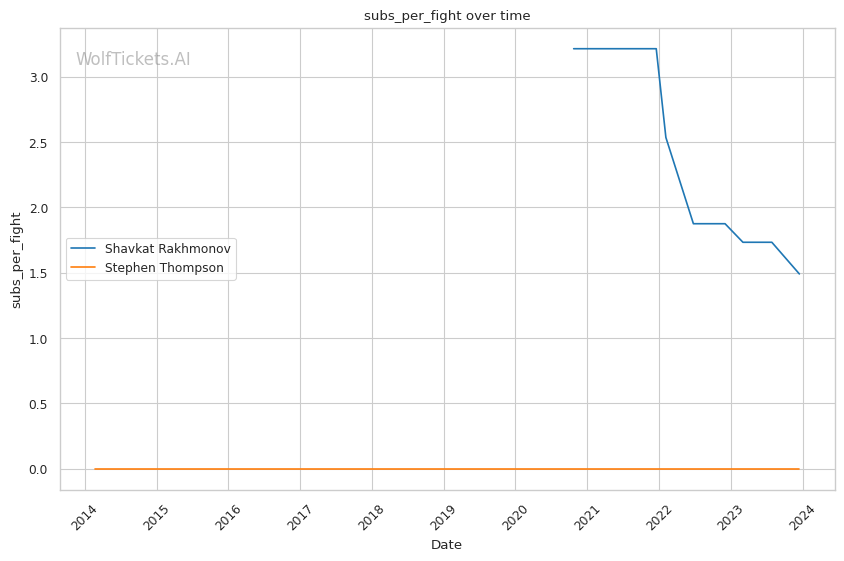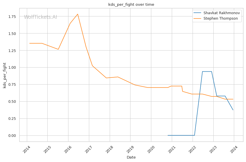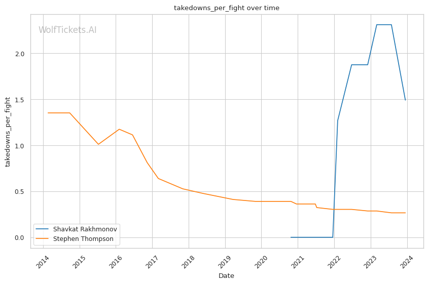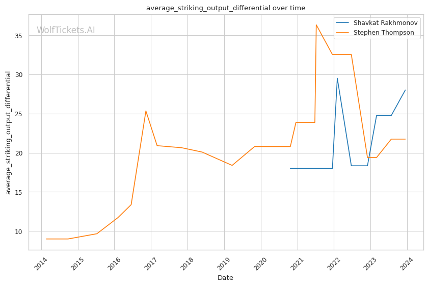 | Stat | Shavkat Rakhmonov | Stephen Thompson | Weight Class Average | |