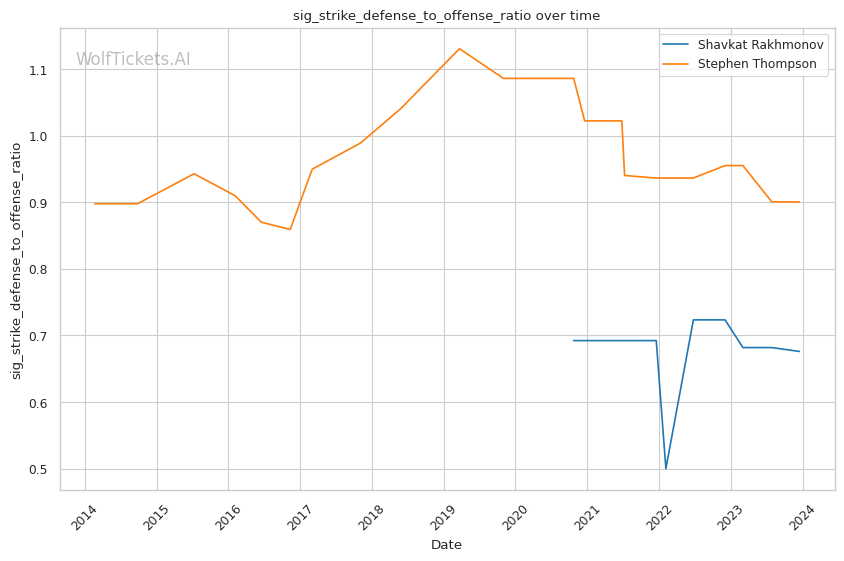 | Striking Defense to Offense Ratio | 44.44% | 83.69% | 87.71% | |