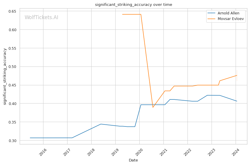The upcoming fight between Allen and Evloev is a classic striker vs. grappler matchup. Allen's striking, characterized by his powerful left hand and effective distance management, will be critical. However, his tendency to absorb head strikes could be exploited by Evloev's improving striking game. Evloev's relentless pressure and top-notch grappling are likely to pose significant challenges for Allen, especially considering Evloev's ability to dictate the pace and location of the fight.