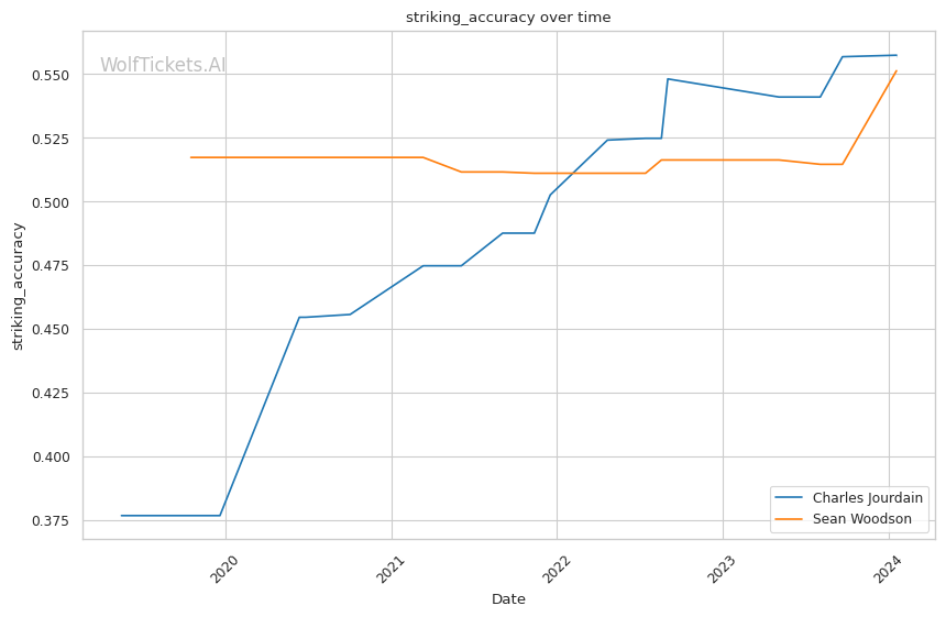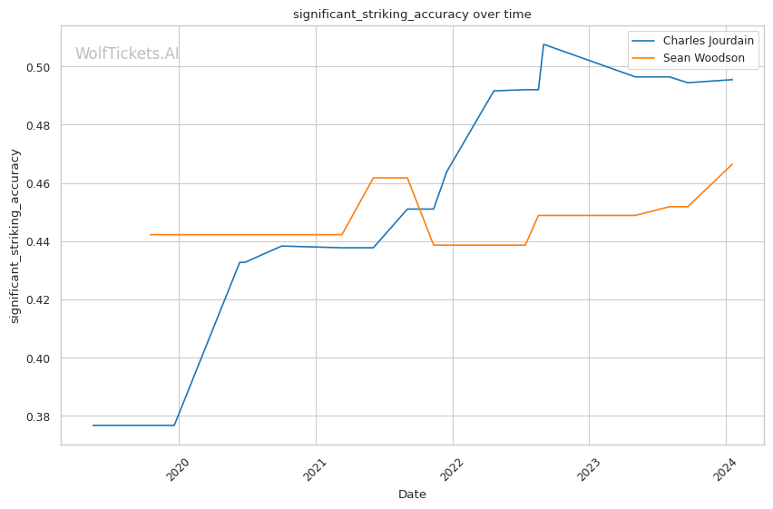 | Significant Striking Accuracy | 49.65% | 46.64% | 43.16% | |