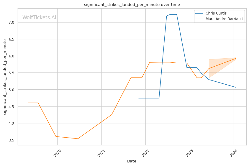 Barriault's stats, with significant strikes landed per minute and a notable striking accuracy, paint him as a high-volume striker. His recent win percentage of 0.67 indicates a positive trend in his career, though his approach leaves room for potential counterattacks.