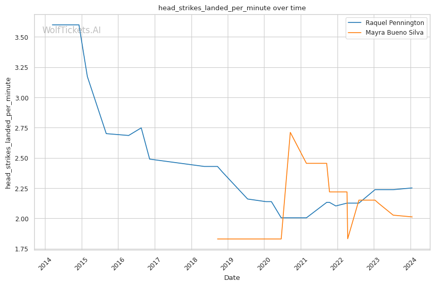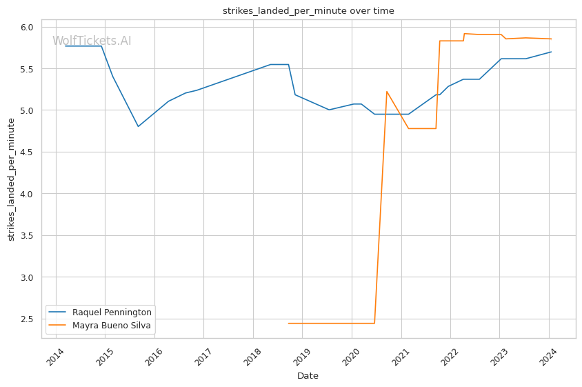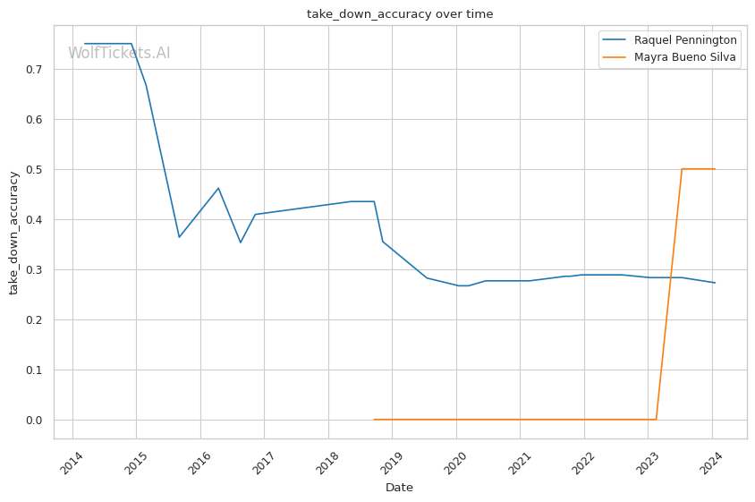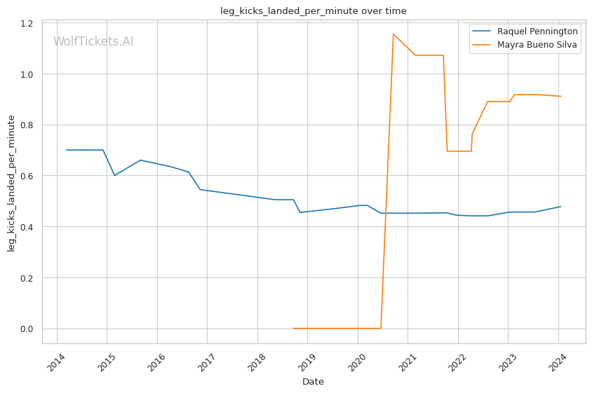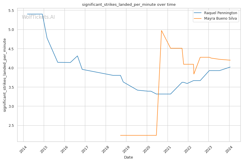 | Stat | Raquel Pennington | Mayra Bueno Silva | Weight Class Average | |