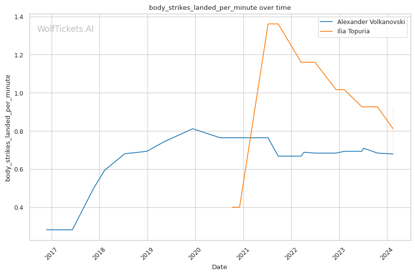 | Body Strikes Landed per Minute | 0.679 | 0.697 | 0.796 | |