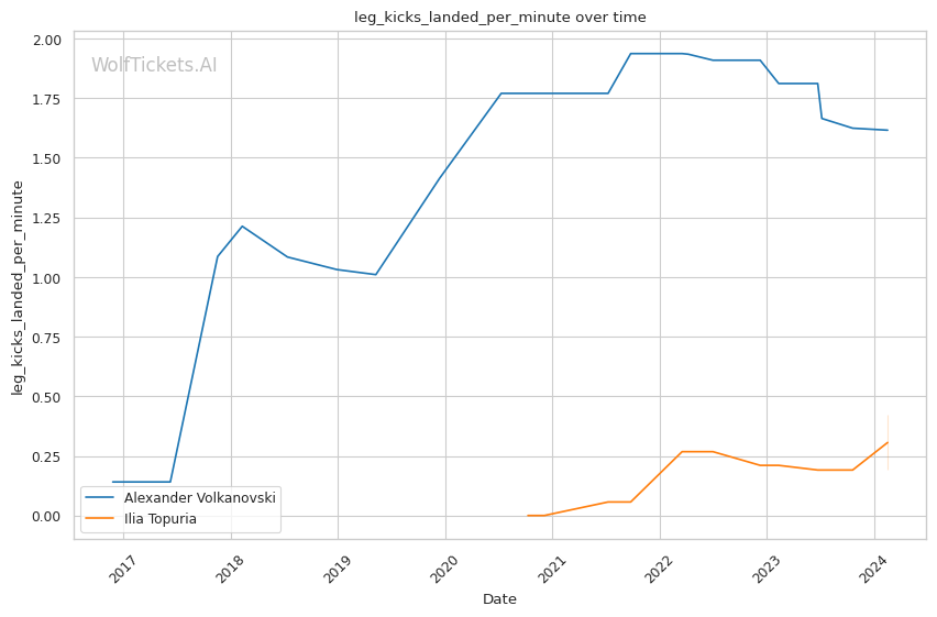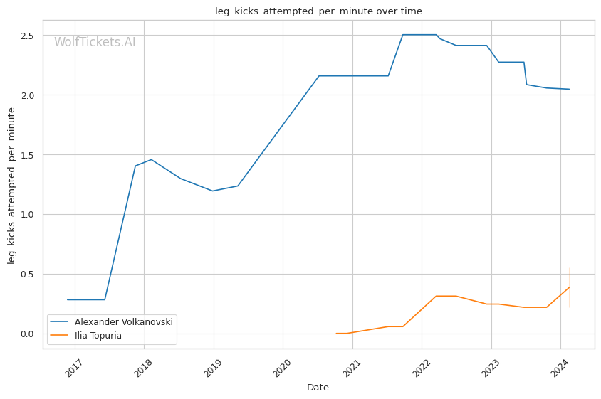 | Leg kicks Attempted per Minute | 2.045 | 0.551 | 1.523 | |