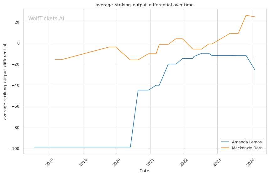 Dern's primary challenge has been in her striking defense and the ability to effectively close distance against stand-up fighters, as seen in her losses to Yan Xiaonan and Marina Rodriguez. Her tendency to absorb strikes could be a significant disadvantage against a striker like Lemos.
