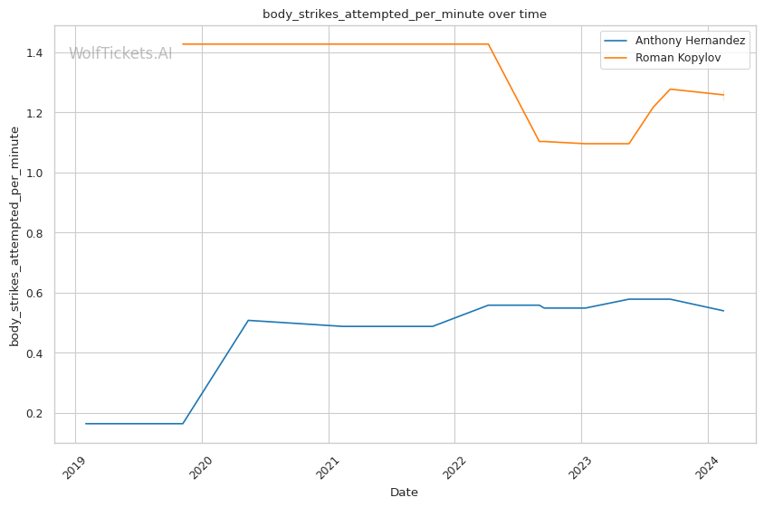 | Body Strikes Attempted per Minute | 0.539 | 1.239 | 1.124 | |