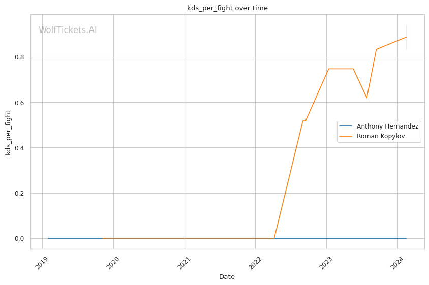 WolfTicketsAI has been accurate in predicting Hernandez's fights, showing a keen understanding of his fighting style and adaptability. However, the model's predictions for Kopylov have been less consistent, which could indicate a higher level of uncertainty for his performance, especially against a versatile opponent like Hernandez.
