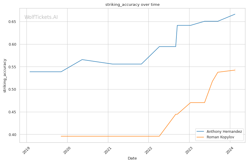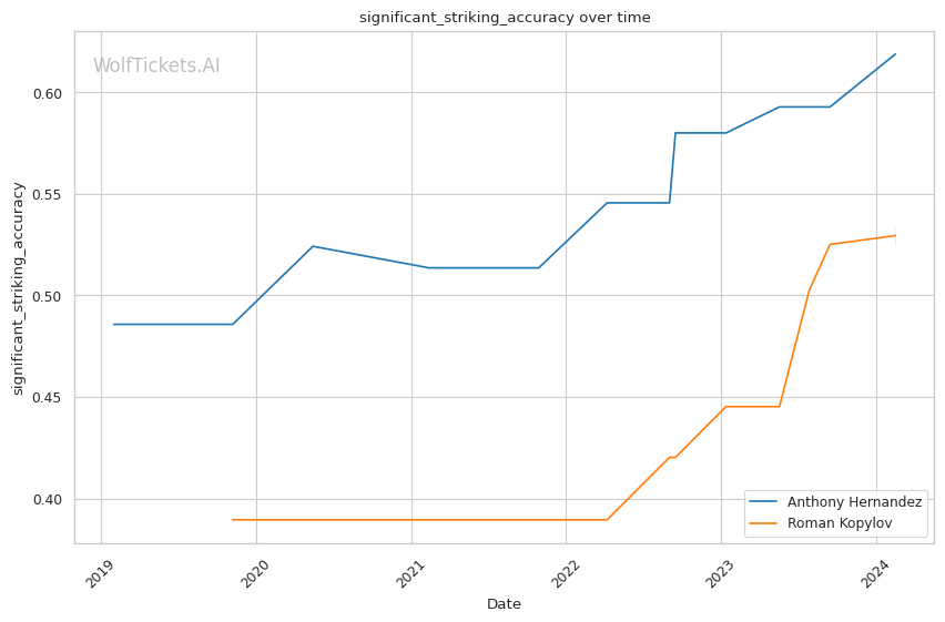Kopylov's striking is formidable, but his takedown defense might be his downfall. His striking accuracy and ability to land significant strikes are key, but Hernandez's pressure and grappling could neutralize these strengths.