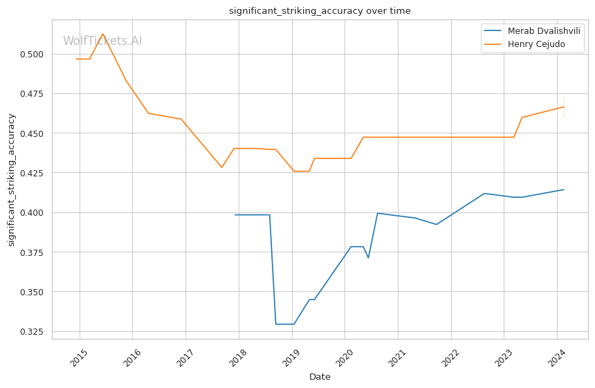 | Significant Striking Accuracy | 41.42% | 47.30% | 43.08% | |
