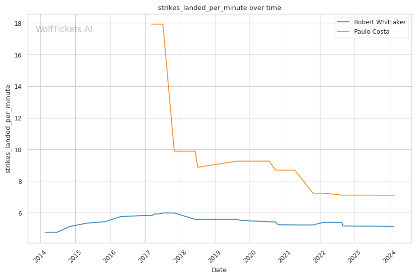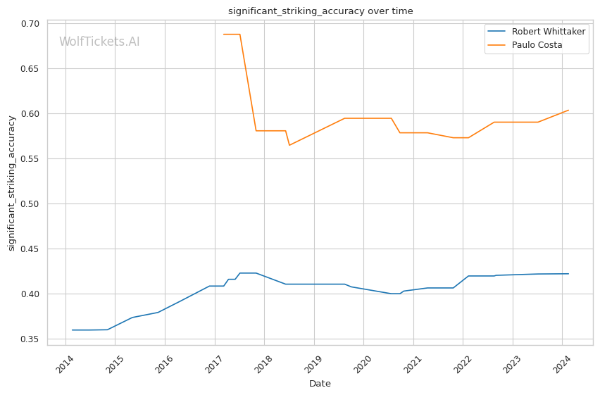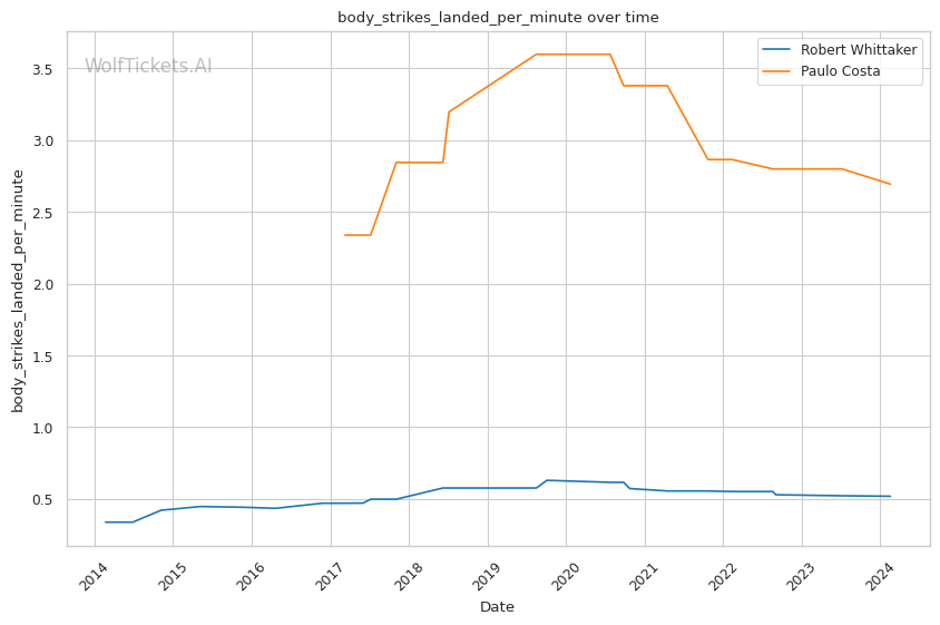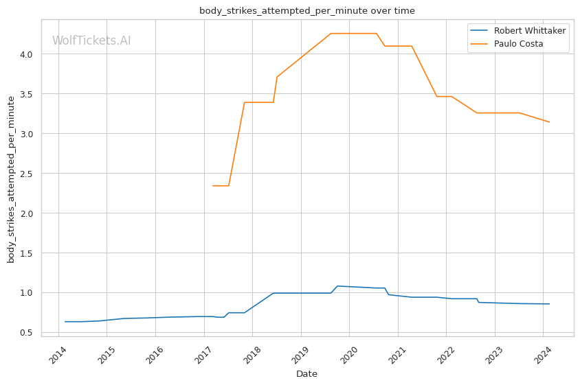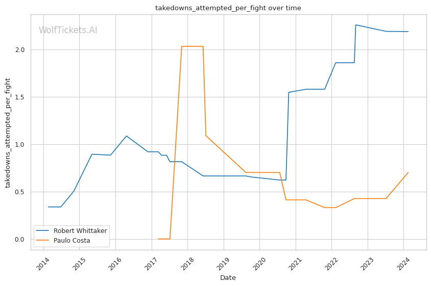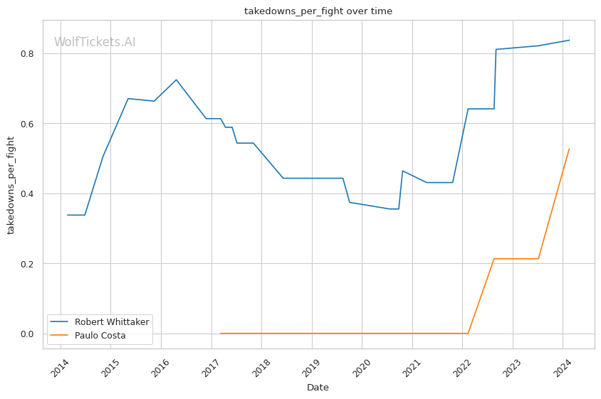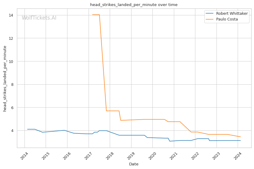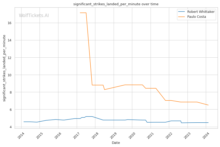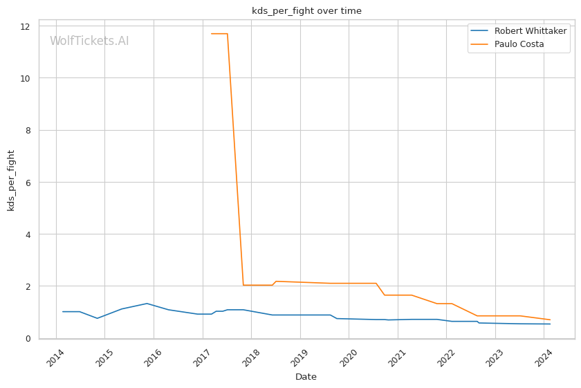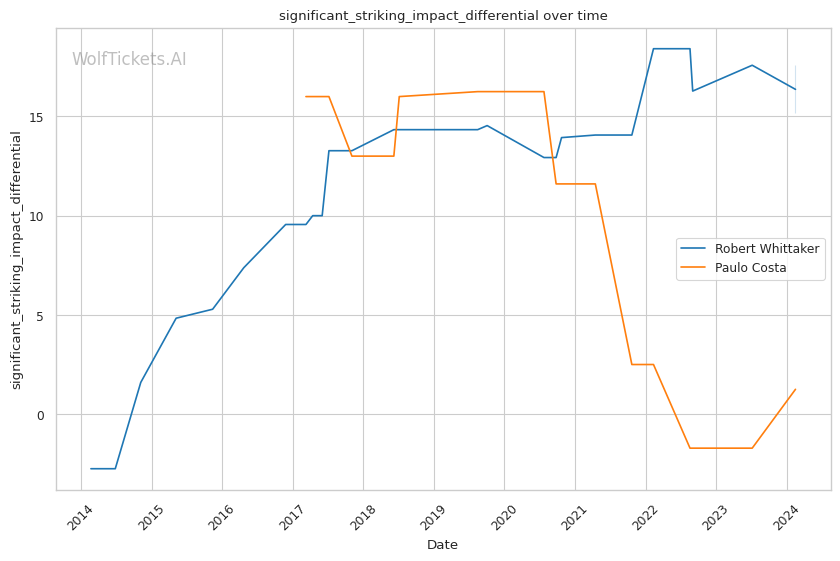 Costa's fight metrics indicate a high knockdown rate and significant striking accuracy, but a closer look reveals weaknesses in his striking defense. His style, reminiscent of fighters like Gaethje, is about relentless aggression, which could be a double-edged sword against a strategic fighter like Whittaker.