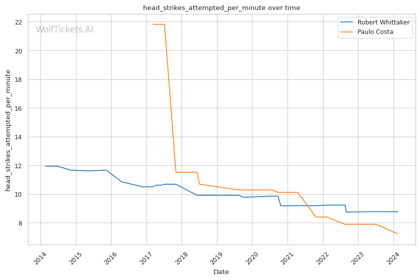 | Head Strikes Attempted per Minute | 8.747 | 7.215 | 6.246 | |