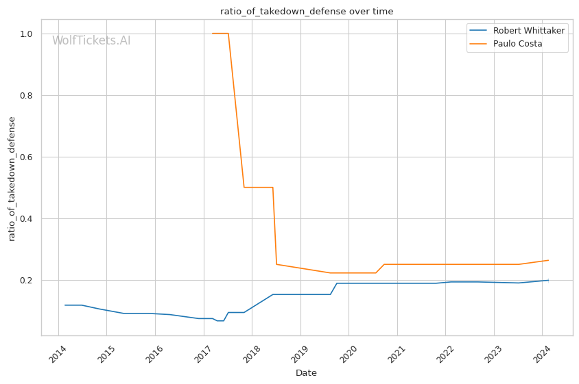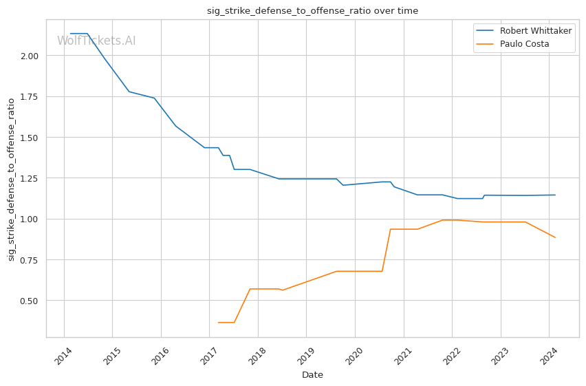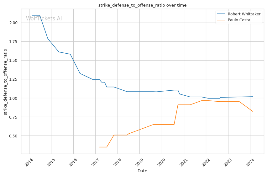 | Striking Defense to Offense Ratio | 102.02% | 81.85% | 81.50% | |