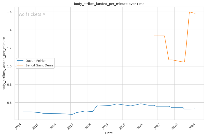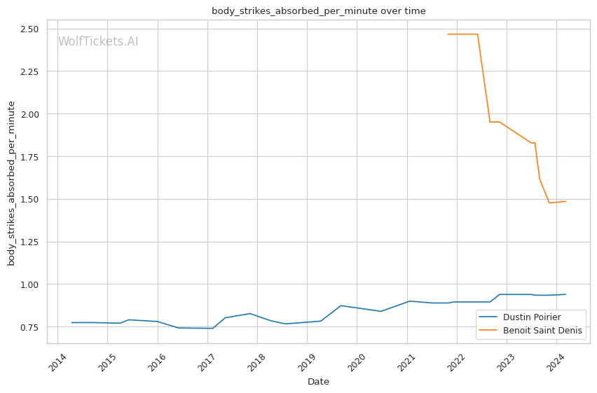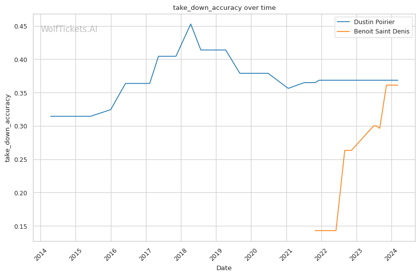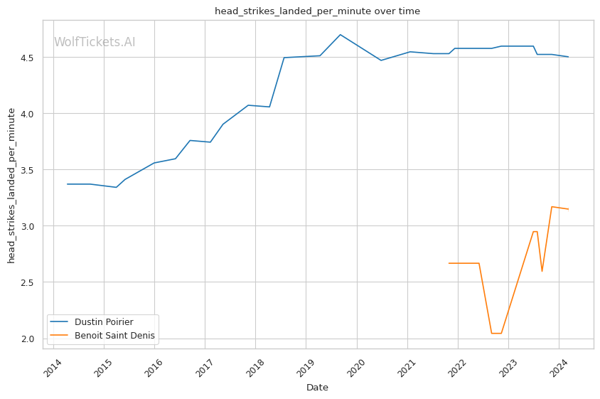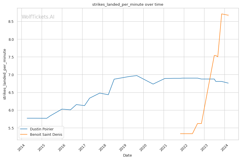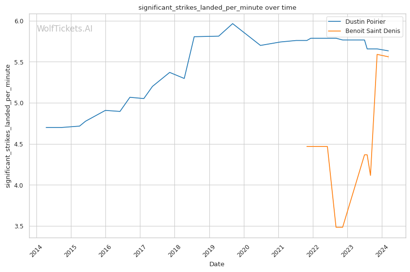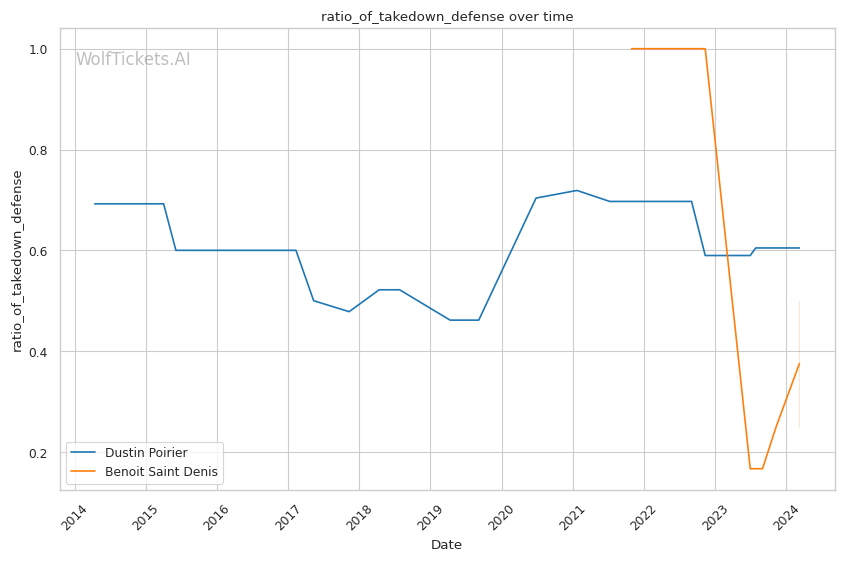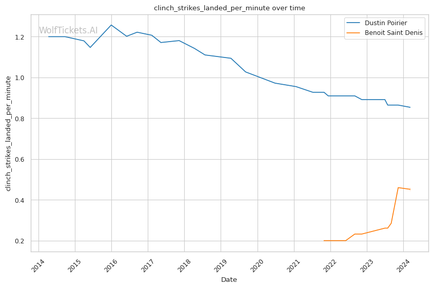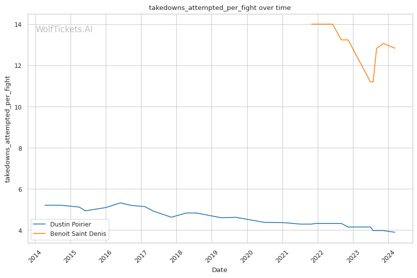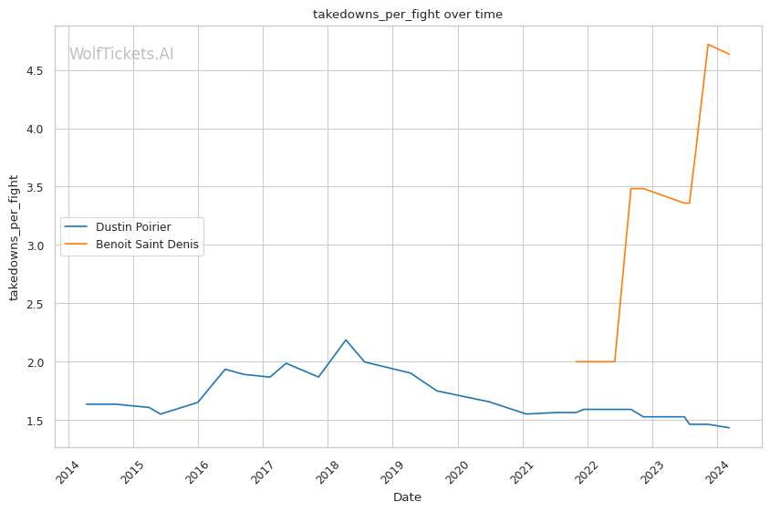 While their striking numbers are comparable, Saint Denis has a significant edge in wrestling, attempting over 10 more takedowns per fight than Poirier. Against an aging Poirier, this grappling-heavy approach could pay dividends.