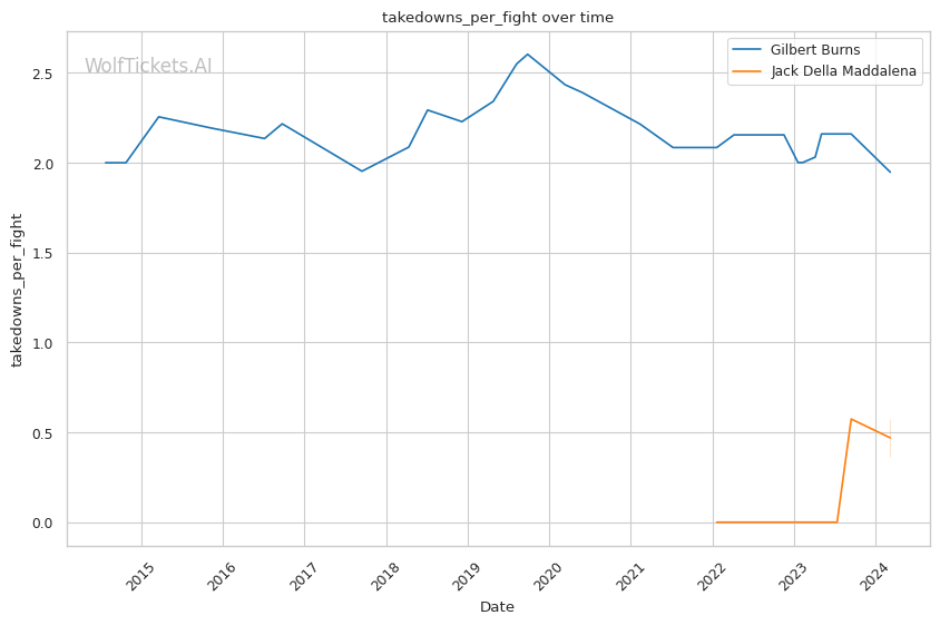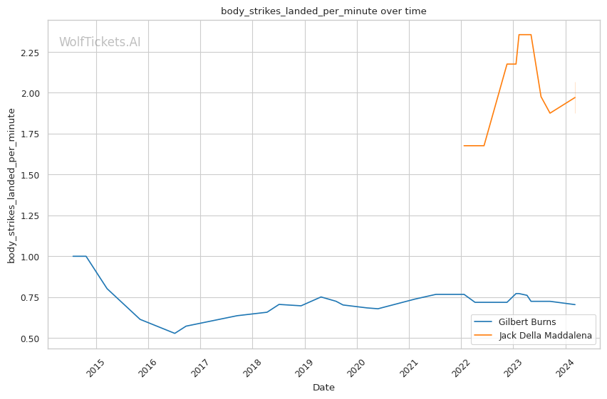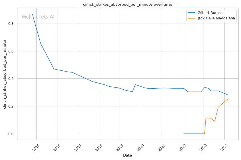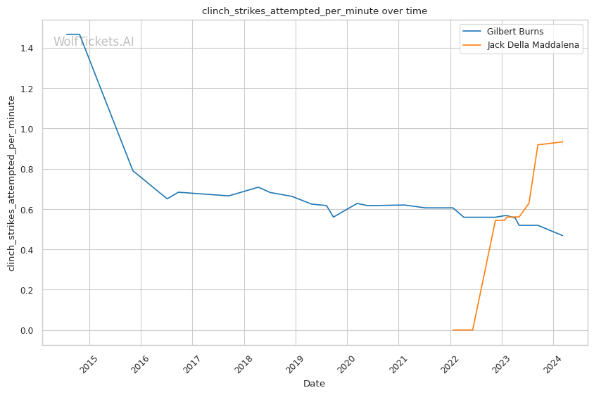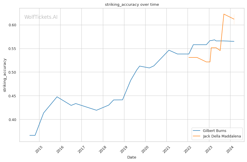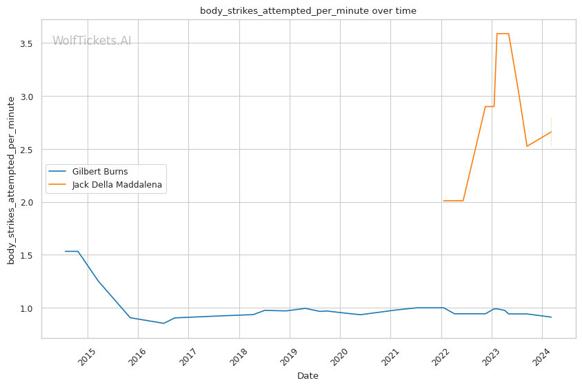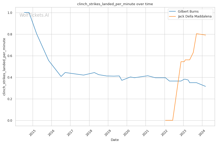 Della Maddalena also has advantages in significant striking differential stats. He lands 8.87 significant strikes per minute, compared to just 3.72 for Burns recently. This gap in striking volume and efficiency is important.