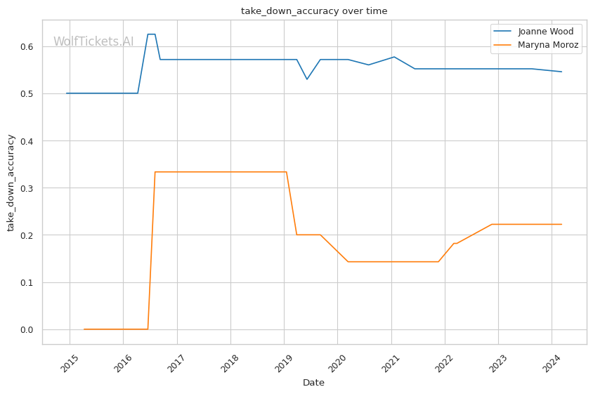 Joanne Wood’s expertise in striking and distance management positions her to potentially outperform Maryna Moroz in their upcoming rematch, despite Moroz's prior victory. With the support of detailed statistical analysis and the model's historical accuracy, Wood is anticipated to make tactical adjustments and claim victory in this eagerly awaited contest.