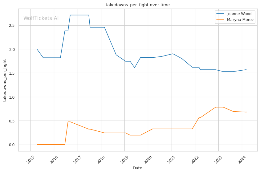 | Stat | Joanne Wood | Maryna Moroz | Weight Class Average | |