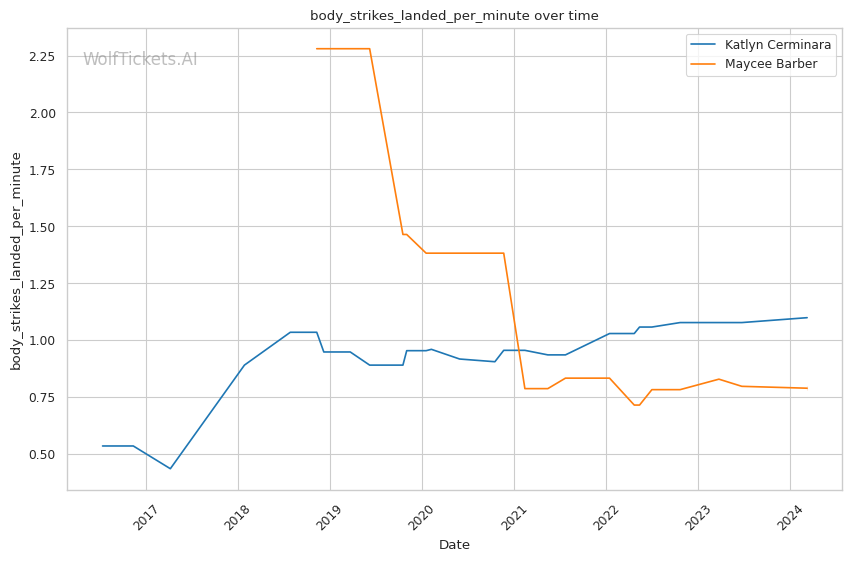 | Stat | Katlyn Cerminara | Maycee Barber | Weight Class Average | |
