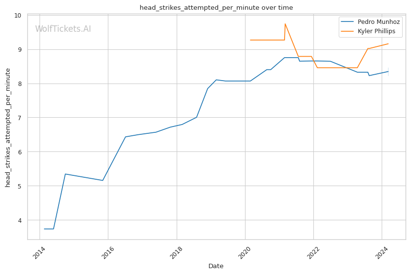 | Head Strikes Attempted per Minute | 8.465 | 9.157 | 6.634 | |
