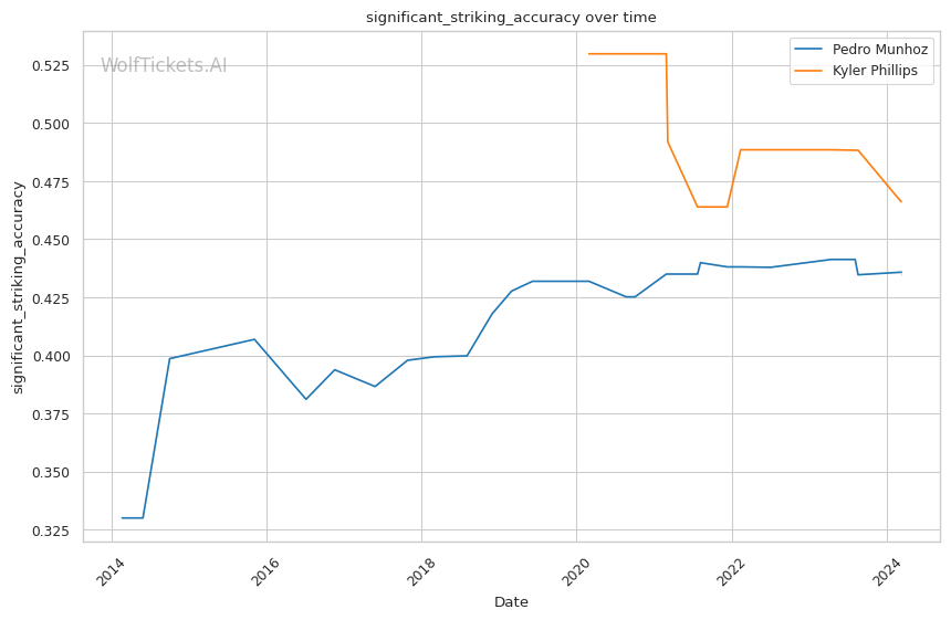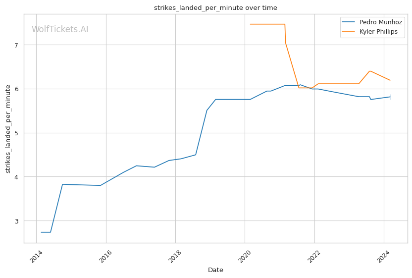 Phillips' high strike differential numbers (+30.67 average, +32.83 significant) suggest he is consistently outpacing opponents in volume.