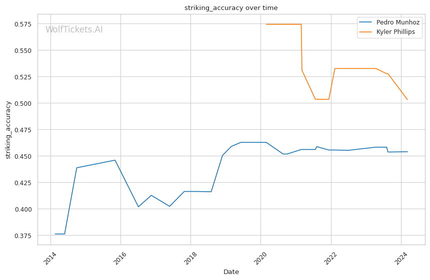 So in totality, the numbers paint the picture of a young, long, high-volume striker in Phillips against an aggressive but hittable brawler in Munhoz. This aligns with the model's pick.