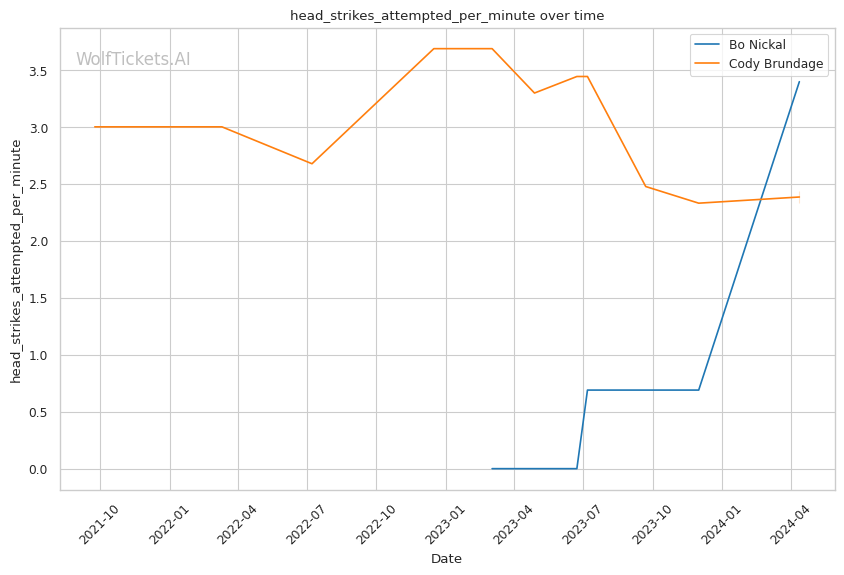 | Head Strikes Attempted per Minute | 3.396 | 2.438 | 6.188 | |