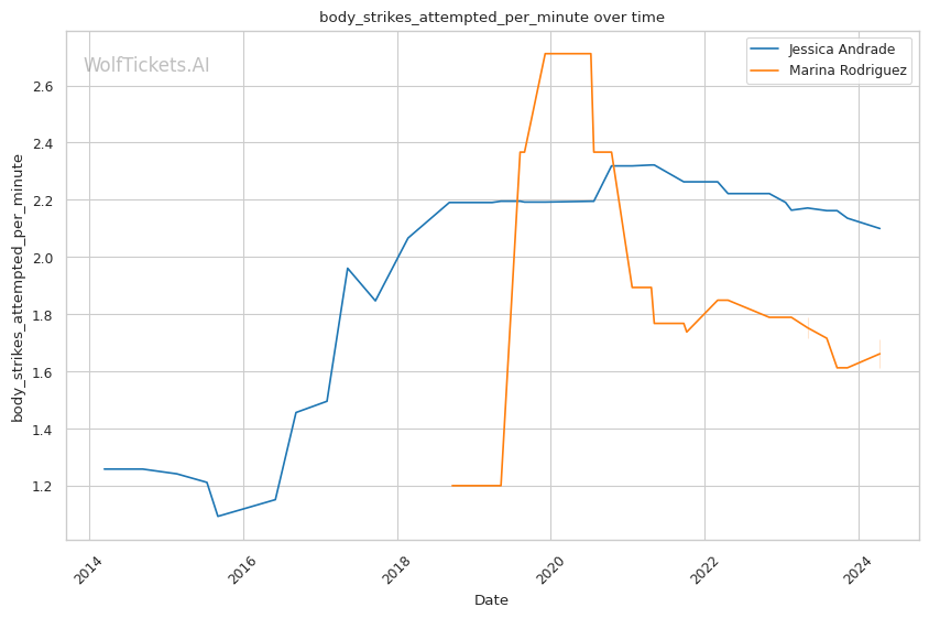 | Body Strikes Attempted per Minute | 2.100 | 1.710 | 1.273 | |