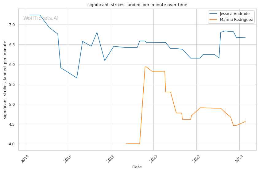 | Stat | Jessica Andrade | Marina Rodriguez | Weight Class Average | |