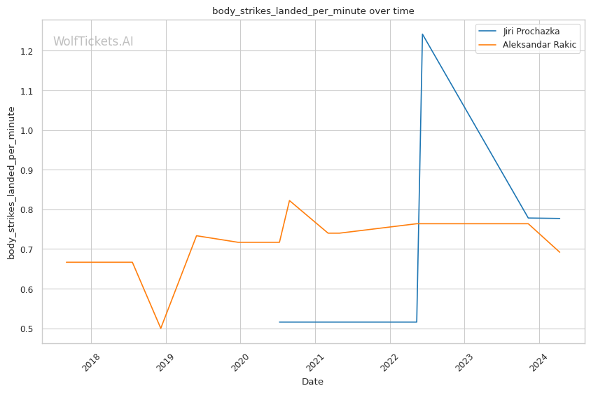 | Body Strikes Landed per Minute | 0.776 | 0.692 | 0.746 | |
