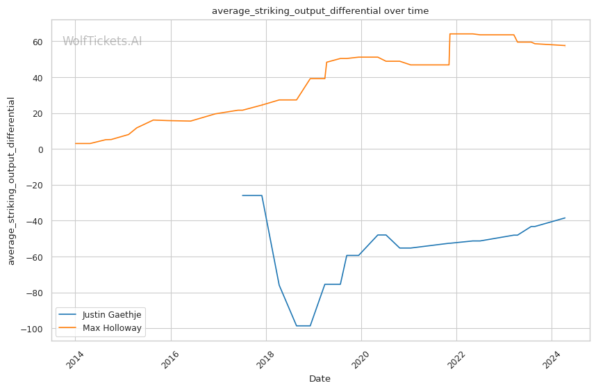 | Stat | Justin Gaethje | Max Holloway | Weight Class Average | |