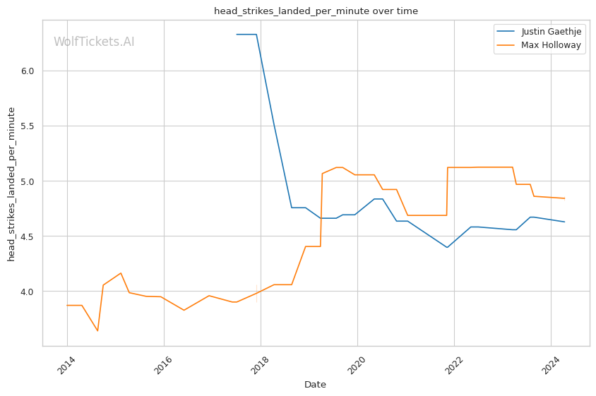 | Head Strikes Landed per Minute | 4.626 | 4.821 | 2.372 | |