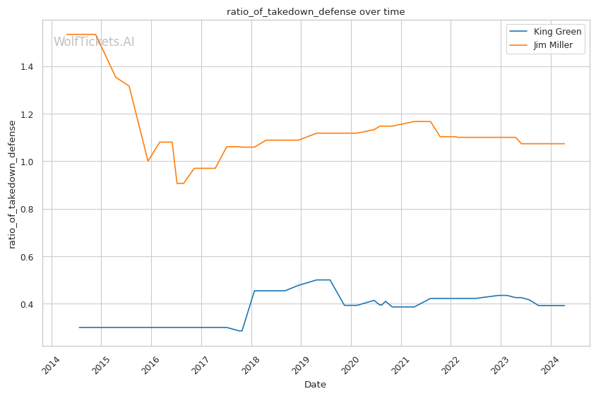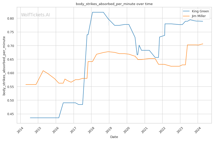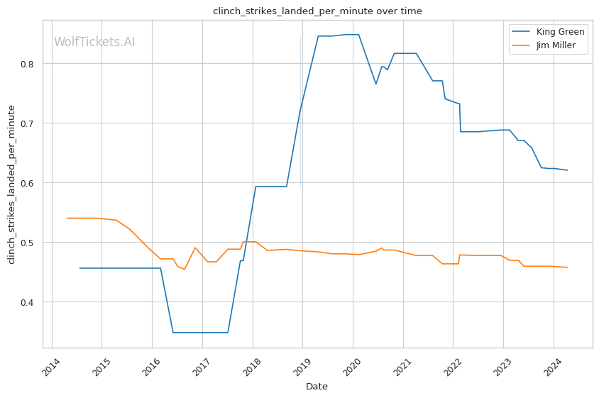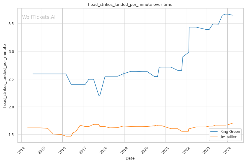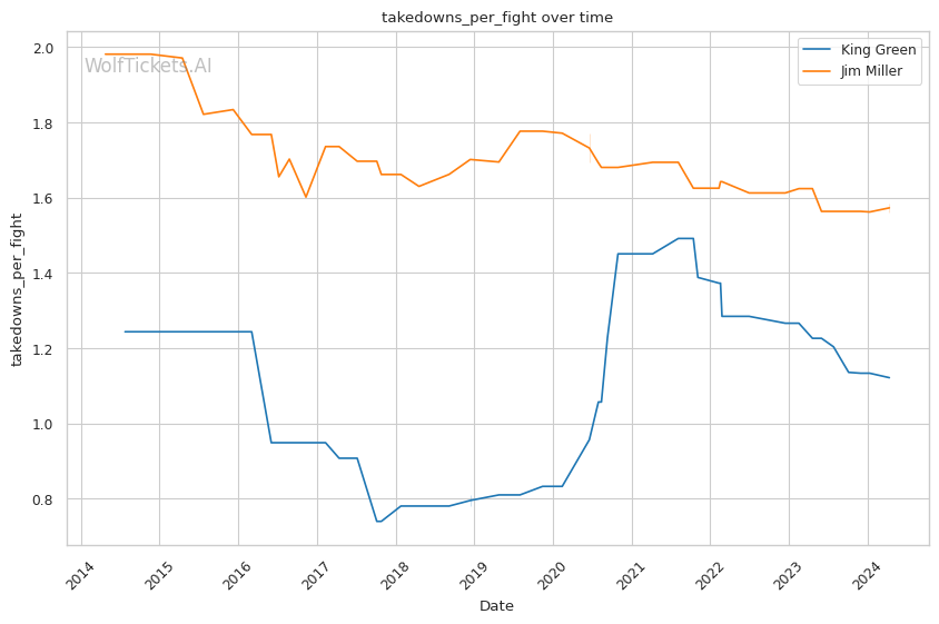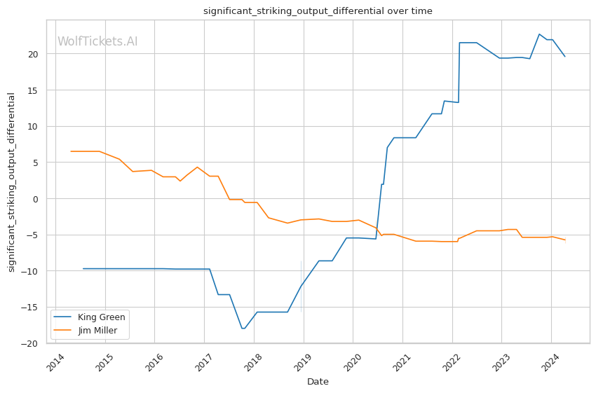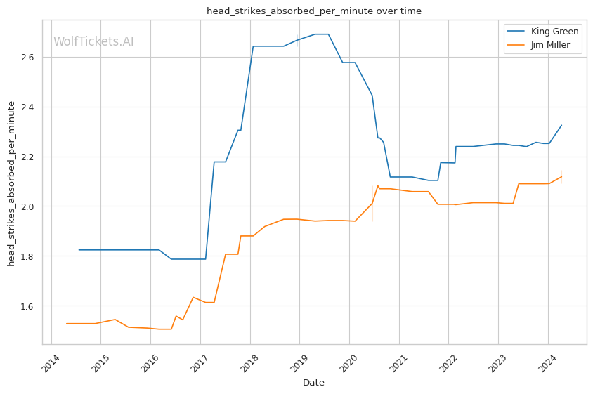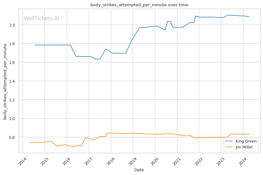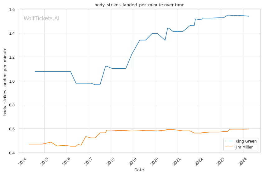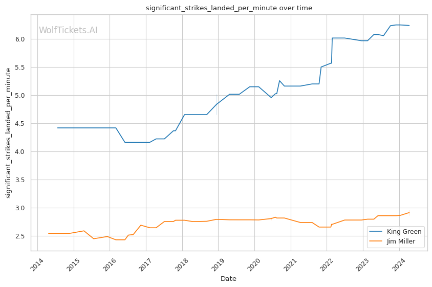 | Stat | King Green | Jim Miller | Weight Class Average | |