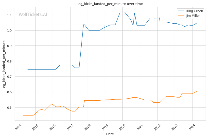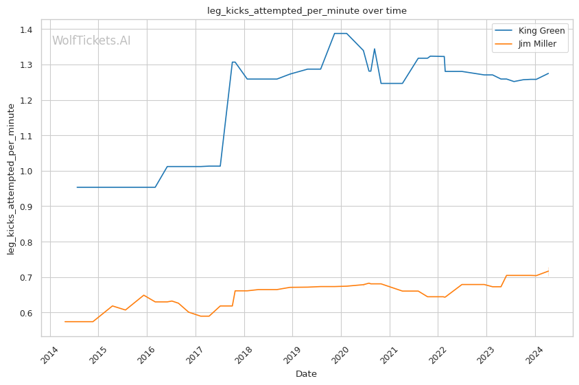 | Leg kicks Attempted per Minute | 1.275 | 0.730 | 0.670 | |