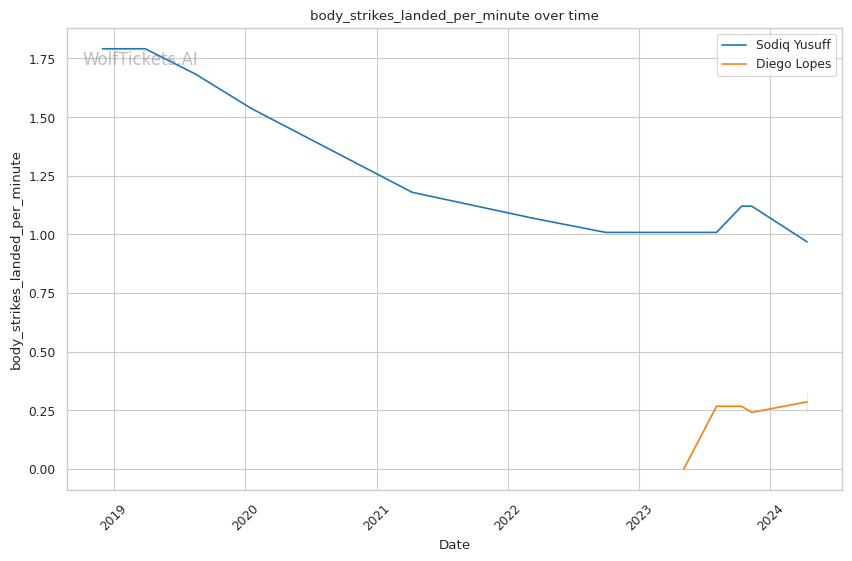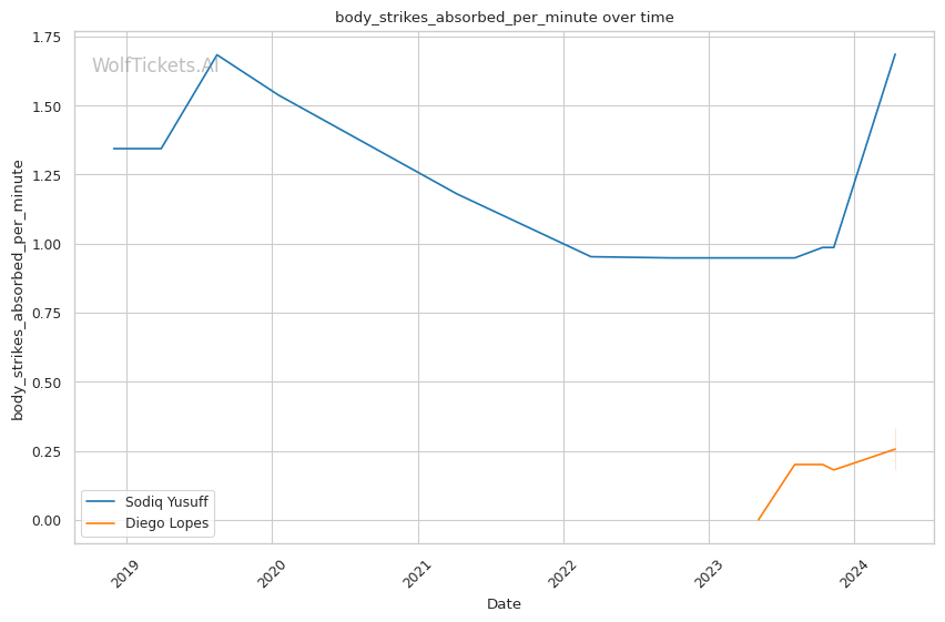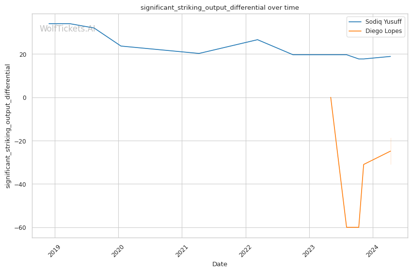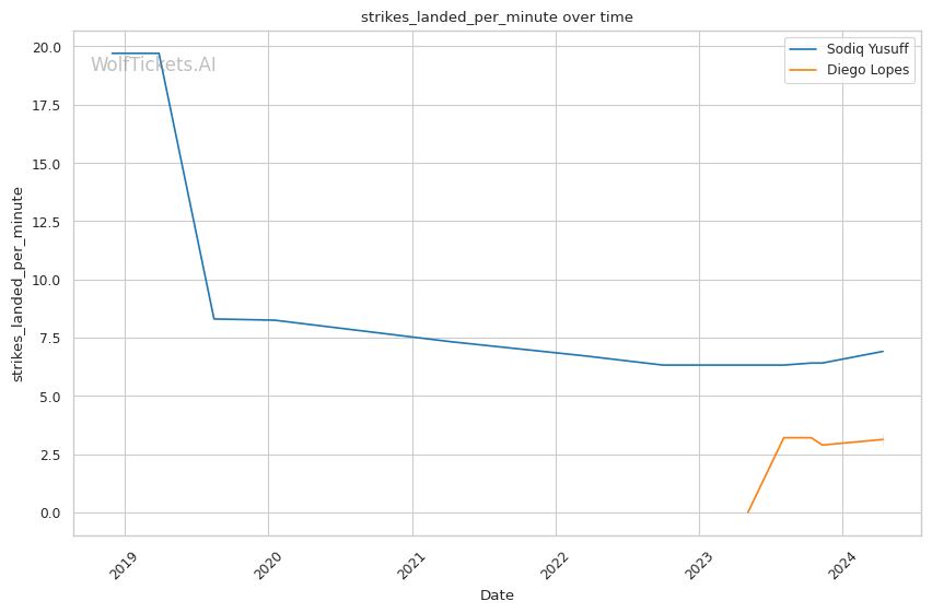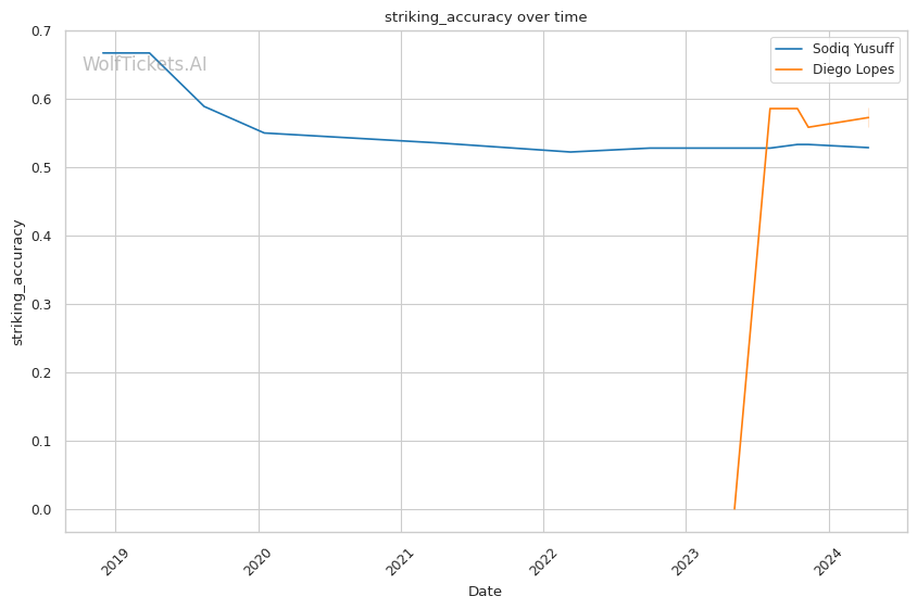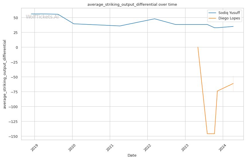 | Stat | Sodiq Yusuff | Diego Lopes | Weight Class Average | |