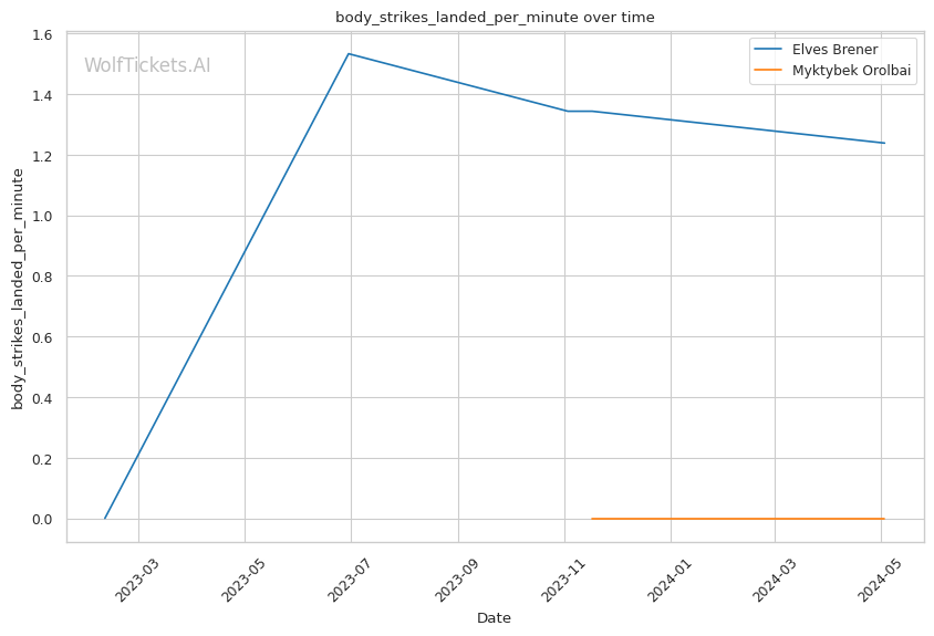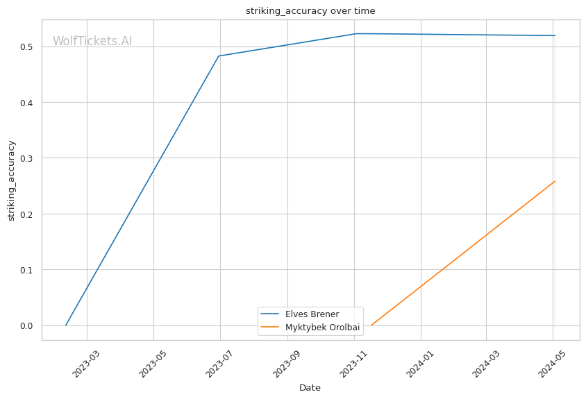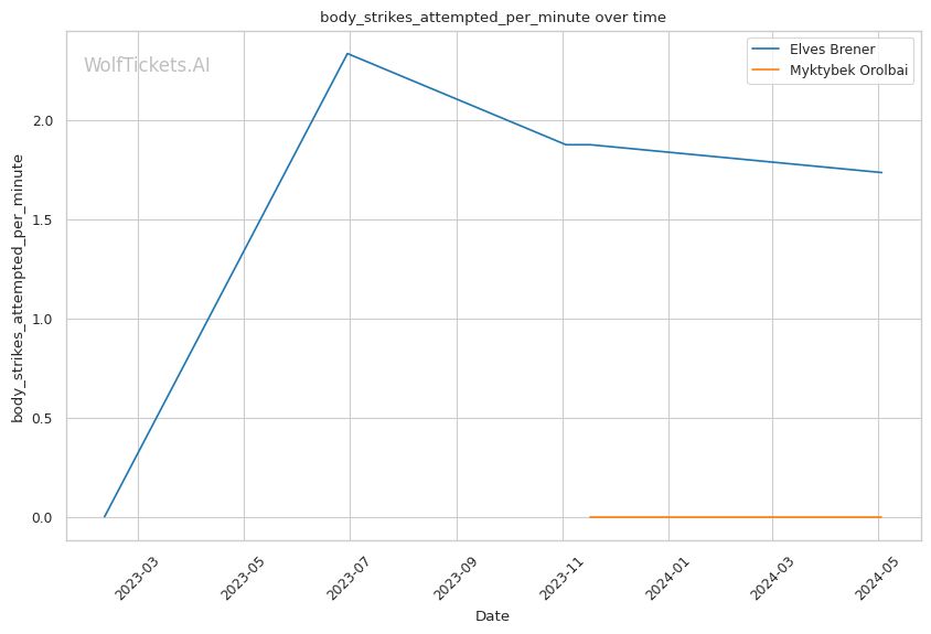 | Stat | Elves Brener | Myktybek Orolbai | Weight Class Average | |