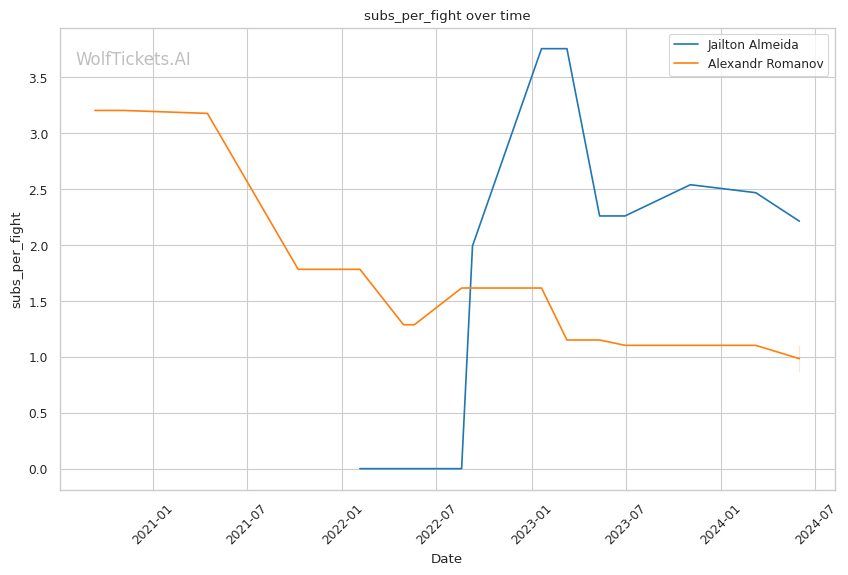 | Submissions per Fight | 2.213 | 0.864 | 0.275 | |