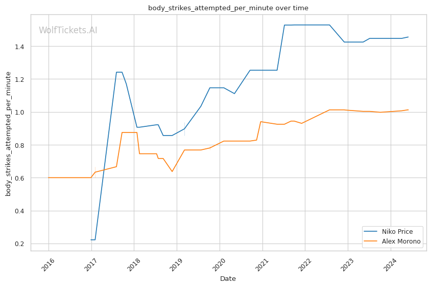 | Body Strikes Attempted per Minute | 1.455 | 1.019 | 1.184 | |