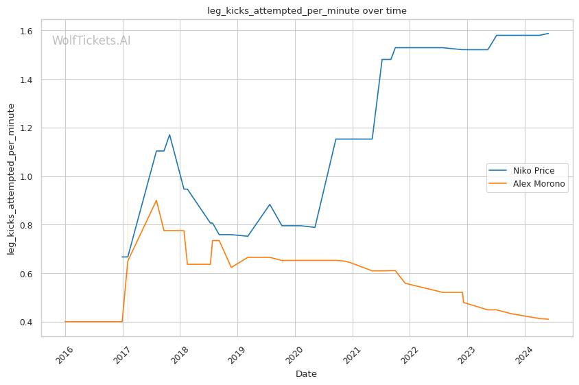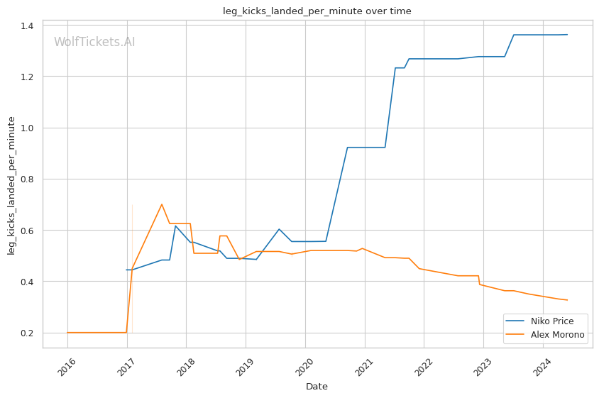 | Leg Strikes Landed per Minute | 1.362 | 0.323 | 0.619 | |