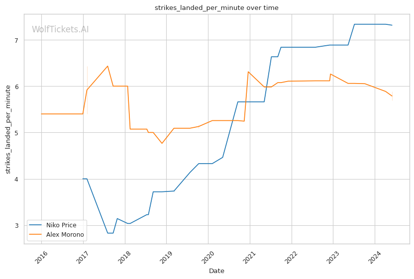 Striking Favors Morono: Morono is the sharper, more defensively responsible striker which should help him in prolonged exchanges. He lands more significant strikes per minute than Price with much better defense.