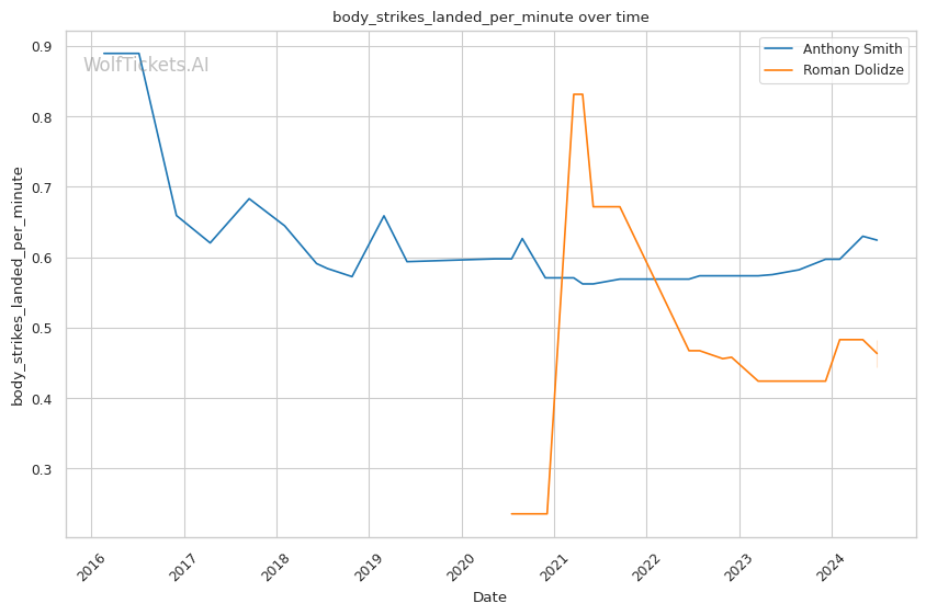 | Body Strikes Landed per Minute | 0.624 | 0.444 | 0.703 | |