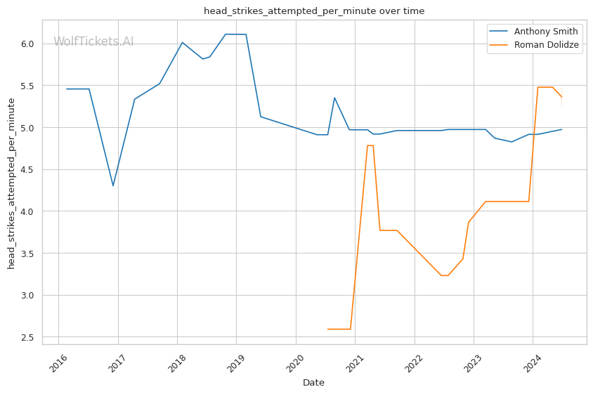 | Head Strikes Attempted per Minute | 4.972 | 5.245 | 5.772 | |