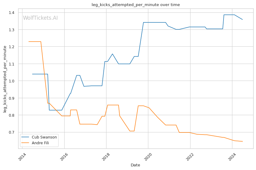 | Leg kicks Attempted per Minute | 1.358 | 0.642 | 0.703 | |
