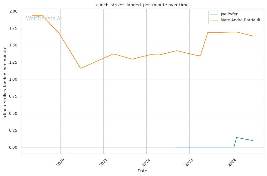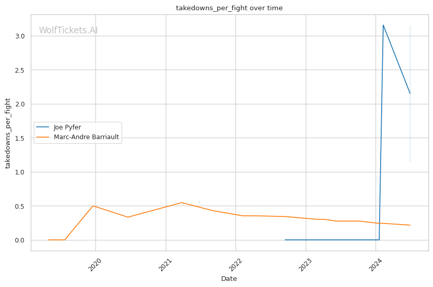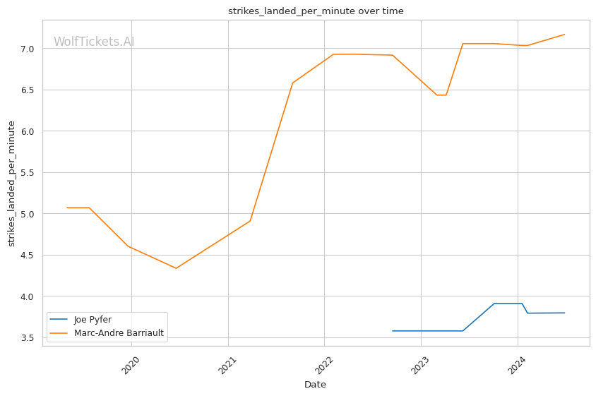| Stat | Joe Pyfer | Marc-Andre Barriault | Weight Class Average | |