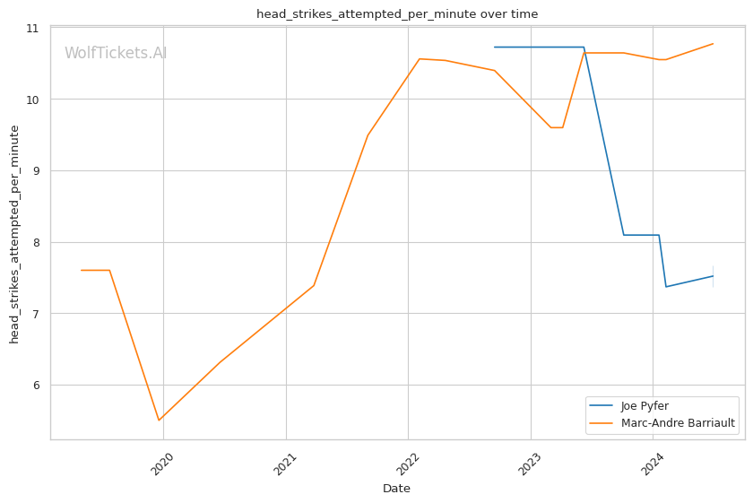 | Head Strikes Attempted per Minute | 7.669 | 10.770 | 6.191 | |