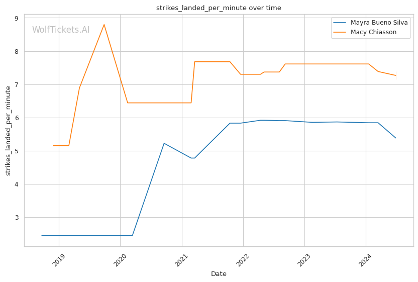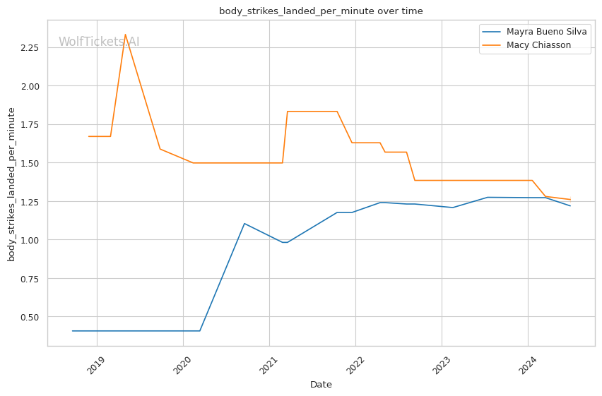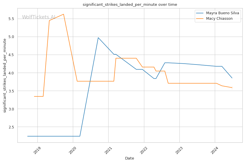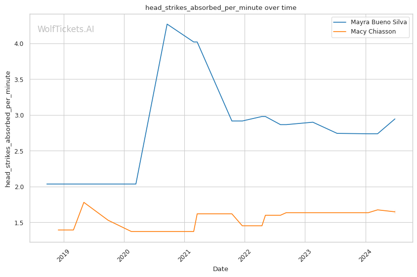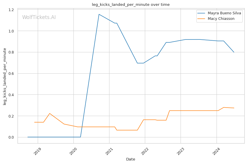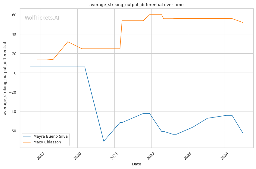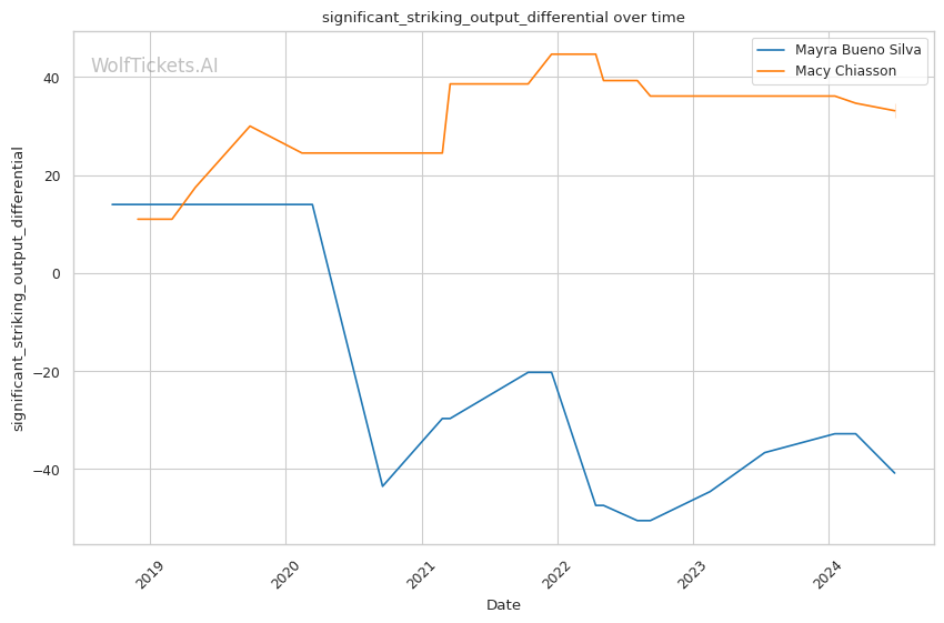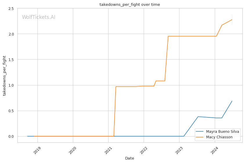 | Stat | Mayra Bueno Silva | Macy Chiasson | Weight Class Average | |